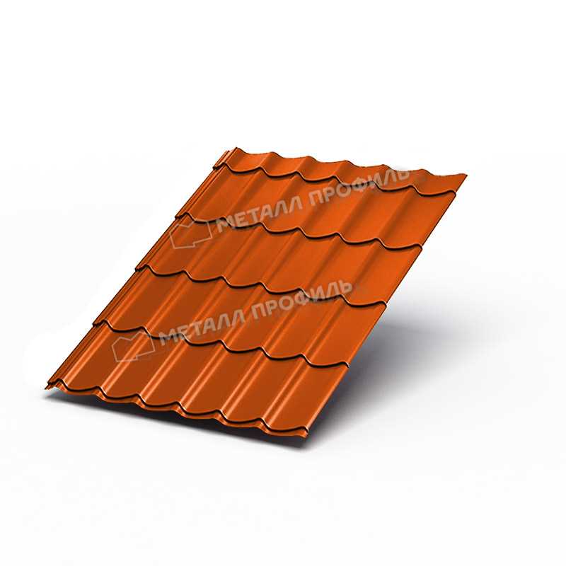 Металлочерепица с профилем Монтеррей от Металл-Профиль представляет собой надежный кровельный материал толщиной 0,45 мм, покрытый полиэстером в ярком оттенке RAL 2004. Этот продукт сочетает эстетику классической черепицы с прочностью металла, идеально подходя для современных крыш. Он устойчив к погодным воздействиям, прост в монтаже и добавляет выразительности зданию благодаря насыщенному оранжевому цвету.