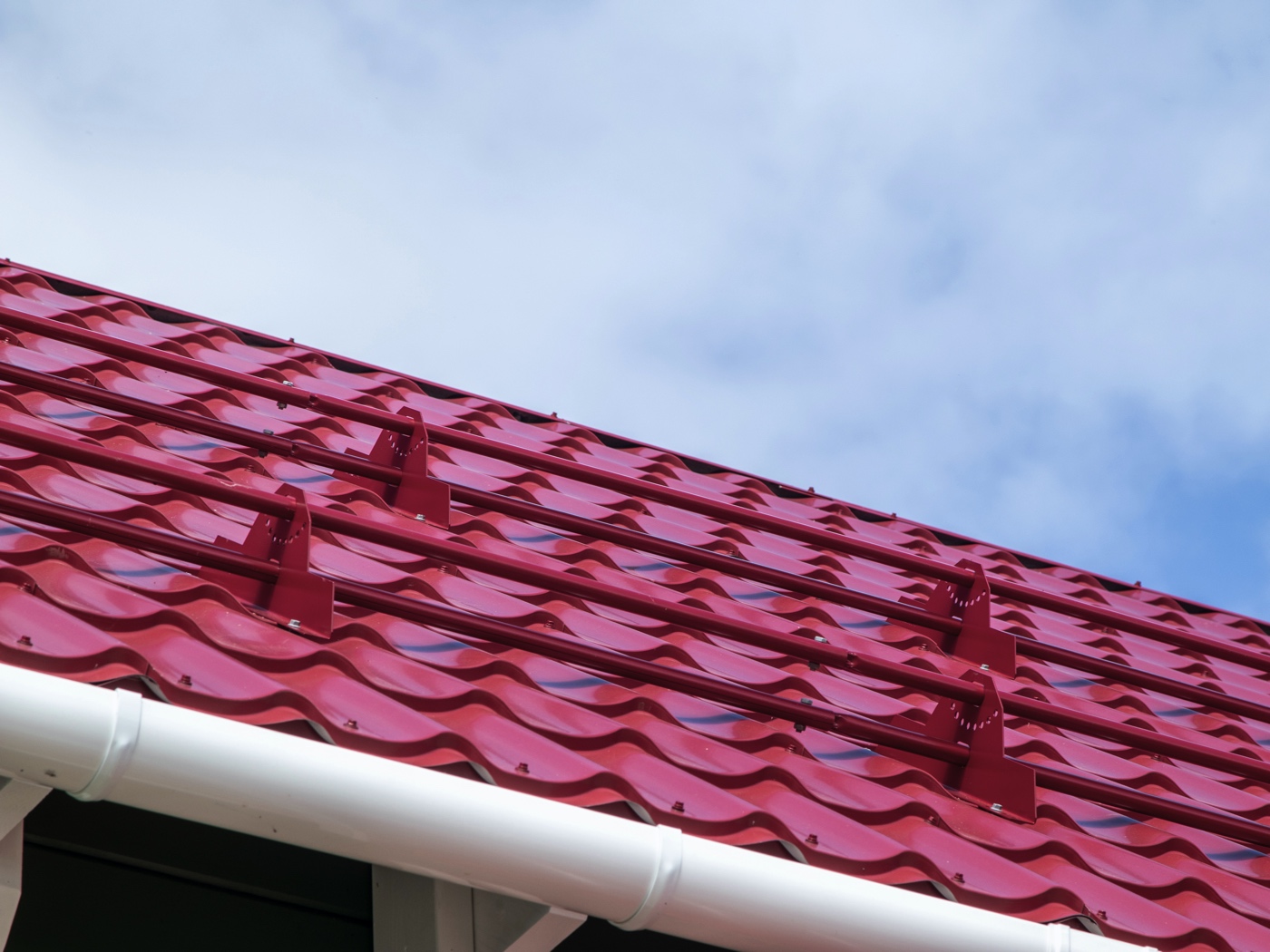 Одним из ключевых плюсов является исключительная долговечность — срок службы превышает 50 лет без потери свойств. Материал устойчив к экстремальным температурам от -60°C до +80°C, не боится града и сильного дождя. Экономия на монтаже достигается за счет крупного формата листов, а эстетическая привлекательность в цвете красного вина добавляет ценности недвижимости. Кроме того, покрытие не требует частого ухода, достаточно периодической очистки от листвы.