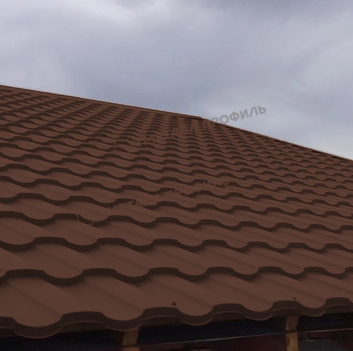 Профиль Монтекристо-SL характеризуется симметричной волной, имитирующей натуральную черепицу с плавными изгибами. Высота волны составляет 25 мм, что обеспечивает отличную жесткость и сопротивление ветровым нагрузкам. Длина листа может варьироваться, но стандартные размеры позволяют минимизировать отходы при монтаже. В темно-коричневом исполнении профиль выглядит элегантно и солидно, подчеркивая классический дизайн зданий. Этот профиль оптимизирован для быстрой укладки, с замковыми соединениями, которые гарантируют герметичность стыков.