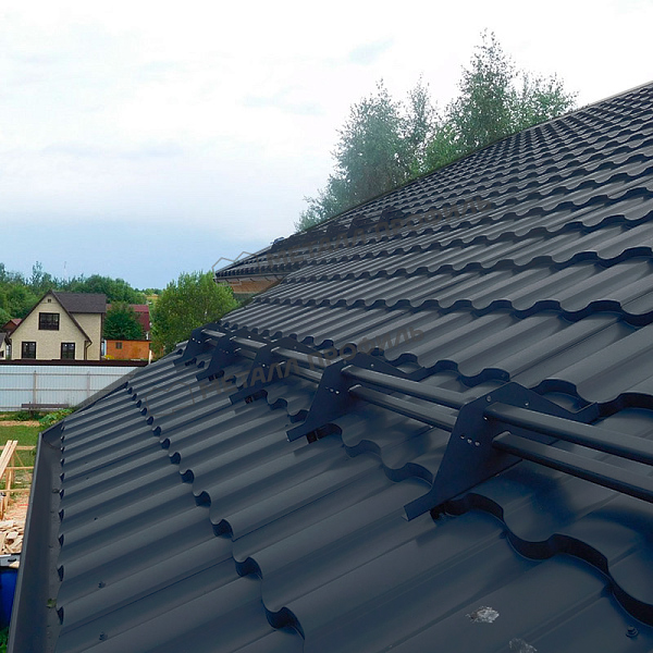 Металлочерепица в цвете серый графит представляет собой надежный и эстетичный материал для кровли. С толщиной 0,5 мм и специальным покрытием, она сочетает долговечность с современным дизайном, подходящим для различных архитектурных стилей.