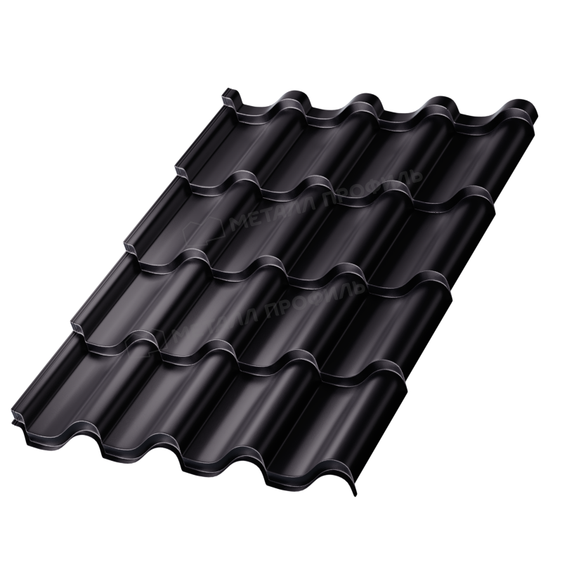 Металлочерепица Монтерроса-M с толщиной 0,5 мм и покрытием PURMAN® в цвете RAL 9005 Черный темный представляет собой надежный кровельный материал от компании Металл-Профиль. Это сочетание эстетики классической черепицы и современных технологий обеспечивает долговечность и стиль для вашего дома.