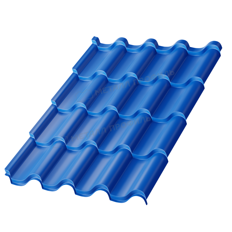 Металлочерепица с профилем Монтерроса-S толщиной 0,5 мм и покрытием PURMAN® в насыщенном синем цвете RAL 5005 представляет собой надежный и эстетичный материал для кровли. Она сочетает в себе прочность металла, долговечность покрытия и привлекательный внешний вид, имитирующий натуральную черепицу. Идеально подходит для частных домов, коттеджей и коммерческих объектов, обеспечивая защиту от атмосферных воздействий и долгий срок службы.