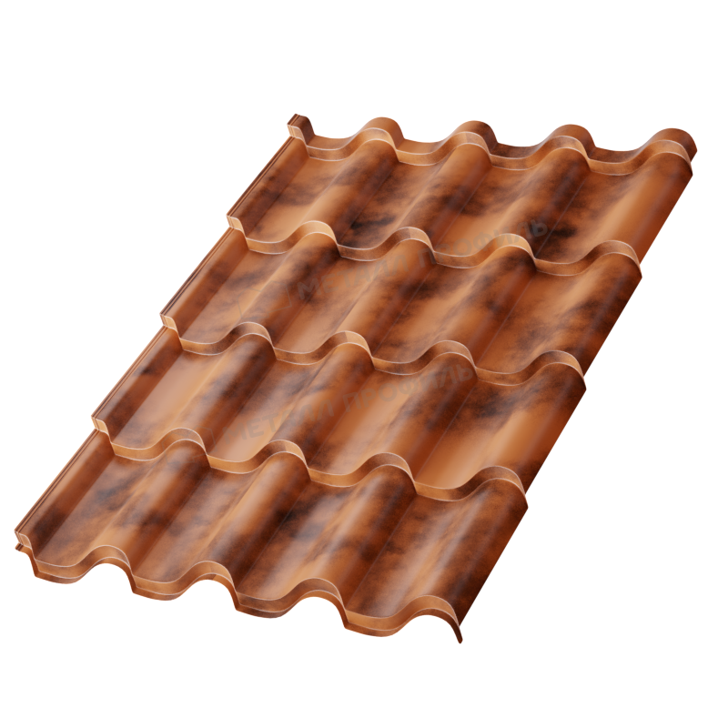 Металлочерепица с профилем Монтерроса-XL и покрытием CLOUDY® Anticato в терракотовом цвете представляет собой надежный и эстетичный материал для кровли. Толщина металла 0,5 мм обеспечивает прочность, а специальное покрытие имитирует состаренную керамику, придавая крыше винтажный вид. Идеально подходит для домов в классическом стиле.