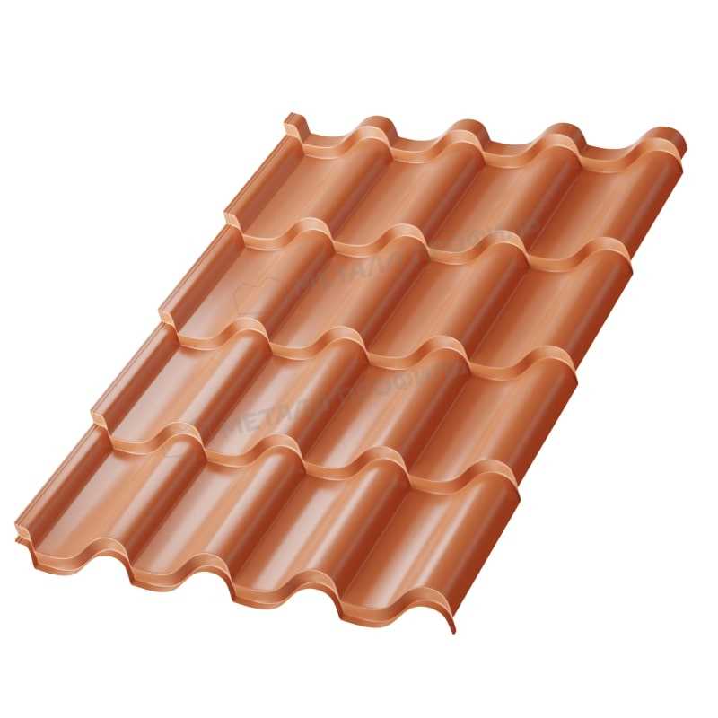 Металлочерепица Монтерроса-XL от Металл-Профиль – это надежный кровельный материал с толщиной стали 0,5 мм и покрытием NormanMP в цвете RAL 8004 (коричневая медь). Она сочетает эстетику натуральной черепицы с прочностью металла, идеально подходя для современных крыш. Длина листа адаптируется под проект, обеспечивая минимальные отходы и простоту монтажа.