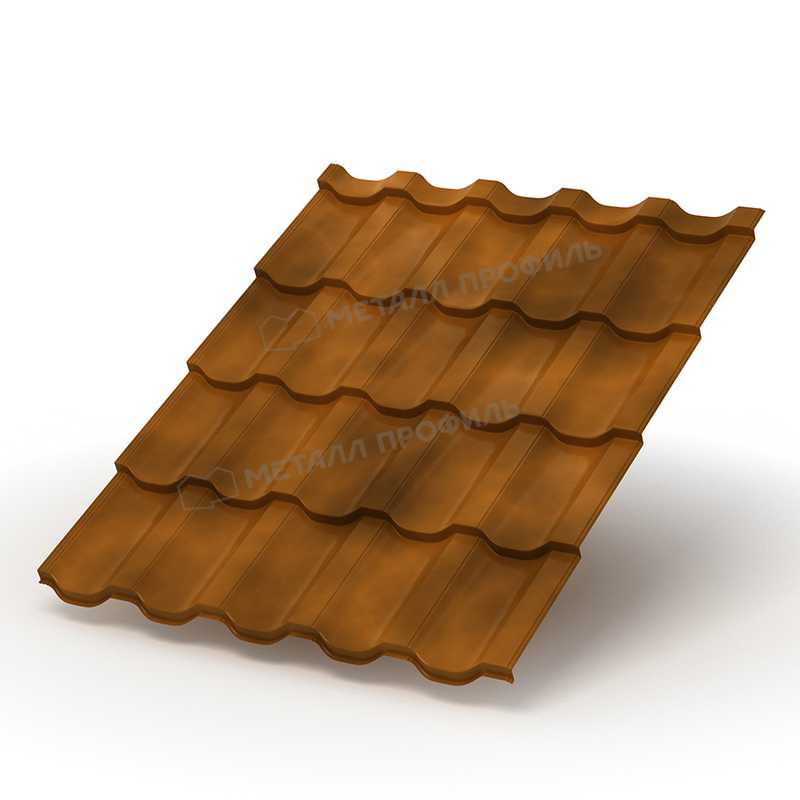 Металлочерепица Трамонтана-S 0,5 мм с покрытием CLOUDY® Anticato в терракотовом оттенке сочетает в себе эстетику натуральной керамики и прочность металла. Это идеальное решение для современных крыш, обеспечивающее долговечность и стильный вид. Продукт от компании Металл-Профиль выделяется матовой текстурой, имитирующей обожженную глину, и повышенной стойкостью к атмосферным воздействиям.