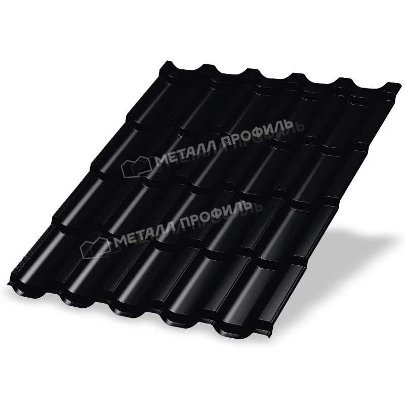 Металлочерепица Трамонтана-SL 0,5 с покрытием PURMAN® в цвете RAL 9005 Черный темный — это надежный кровельный материал от компании Металл-Профиль. Он сочетает в себе эстетику классической черепицы с прочностью металла, обеспечивая долговечность и стильный вид для любого дома. Толщина стали 0,5 мм гарантирует оптимальную жесткость, а специальное покрытие защищает от внешних воздействий.