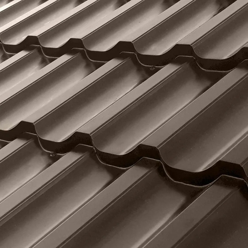 Покрытие VikingMP® — это инновационное матовое полимерное покрытие на основе полиэстера, разработанное для повышения стойкости к атмосферным влияниям. Оно обладает повышенной устойчивостью к ультрафиолетовому излучению, что предотвращает выцветание цвета со временем. Толщина слоя составляет около 35 мкм, что обеспечивает надежную защиту от коррозии и механических повреждений. В цвете RAL 8017 покрытие имитирует оттенок шоколада, придавая крыше элегантный и теплый вид. Это покрытие также характеризуется низким коэффициентом блеска, что делает его менее заметным для грязи и пыли, упрощая уход.