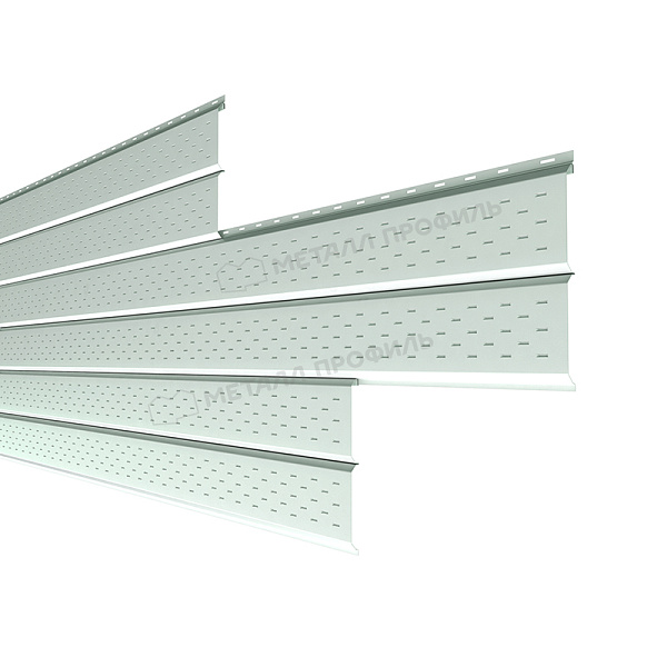 Софит — это специальные панели из серии Lбрус, оснащённые перфорацией на лицевой стороне. Они предназначены для подшивки карнизных свесов кровли. Благодаря аккуратному внешнему виду софит придаёт зданию завершённость и эстетическую целостность. Перфорированные отверстия обеспечивают вентиляцию подкровельного пространства, предотвращая скопление конденсата, а также развитие плесени и грибка.